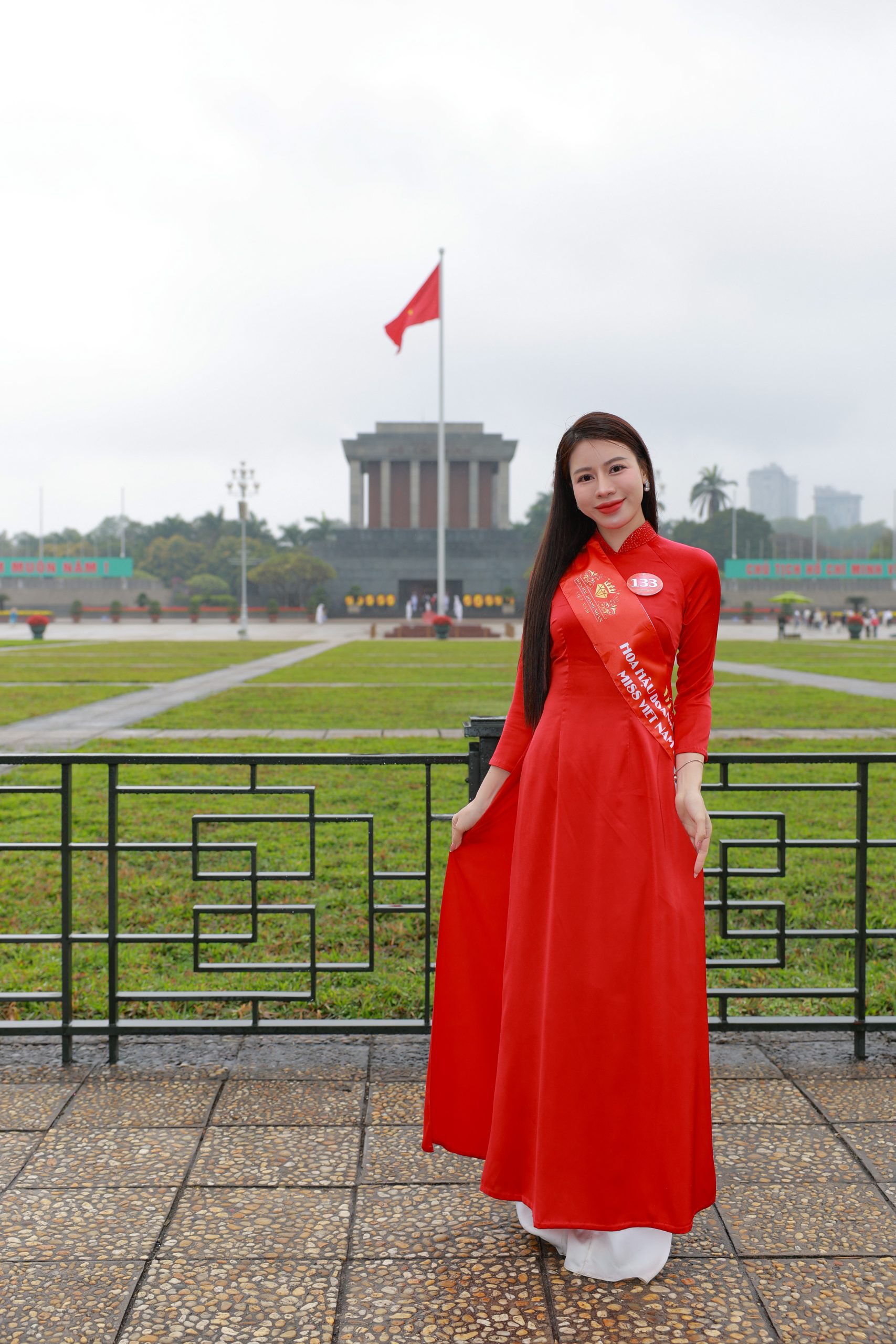 Trong ngày đầu tiên, đoàn BTC cùng Top 24 thí sinh xuất sắc diện chiếc áo dài truyền thống có lịch trình viếng thăm lăng Bác. Tại đây, cô bày tỏ lòng kính trọng và niềm tự hào sâu sắc đối với vị lãnh tụ vĩ đại của dân tộc. Mỗi bước đi của Bùi Thị Huyền đều toát lên sự trang nghiêm và tôn kính, thể hiện nét đẹp truyền thống của người phụ nữ Việt Nam.